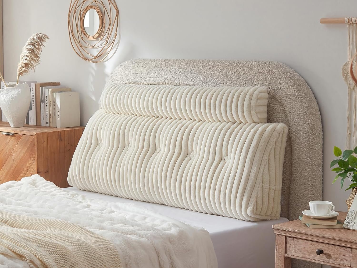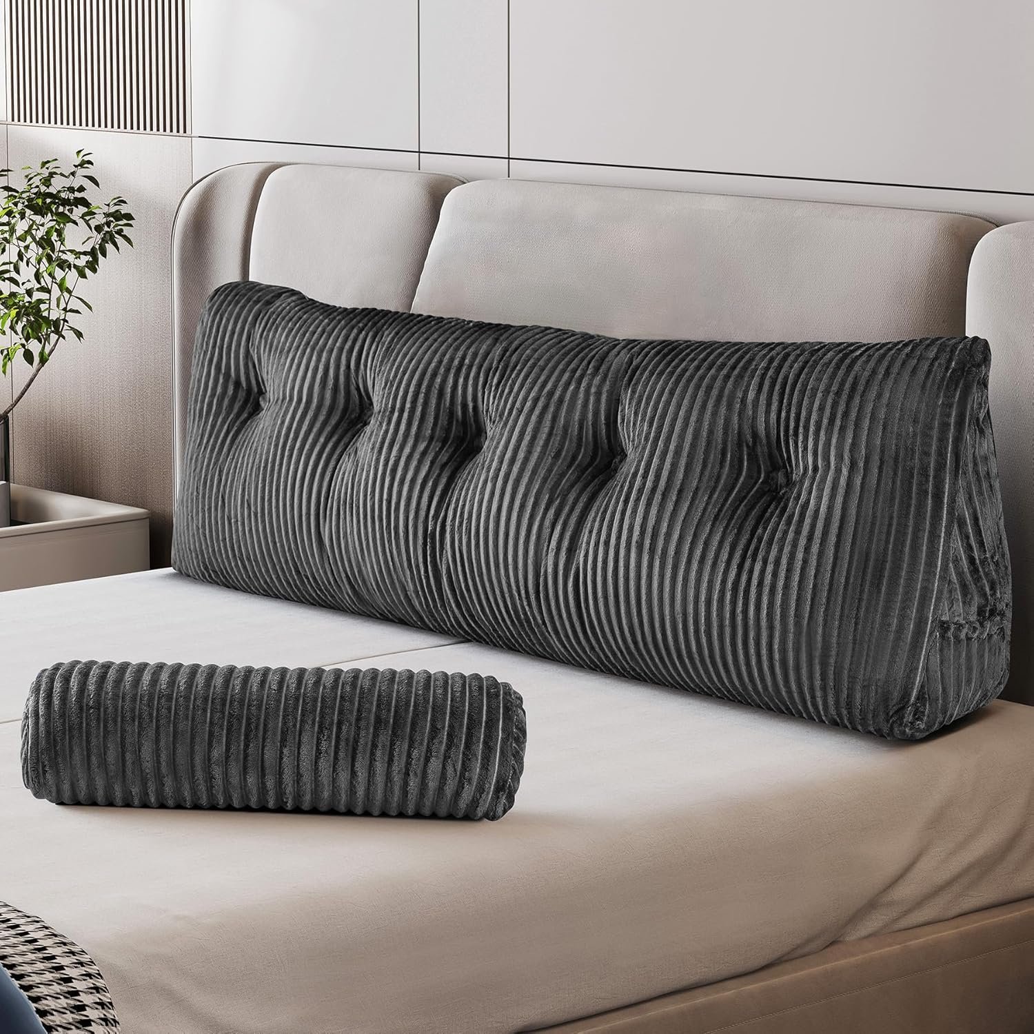 About this item High-quality, high-density 400 faux fur fabric Large Bed Headboard Wedge Pillows and Extra Large Neck Pillows Two types of filling cotton: 50% 7D + 50% 15D mixed mode. Machine washable and removable for easy cleaning.